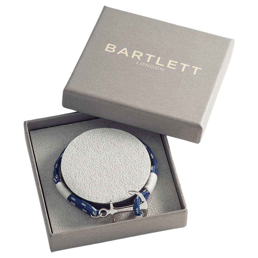 With a simple flecked navy rope design and a silver-toned anchor fastening as a nod to nautical styling, the Bartlett Anchor Rope Bracelet is a must-have casual accessory to elevate any spring/summer look.