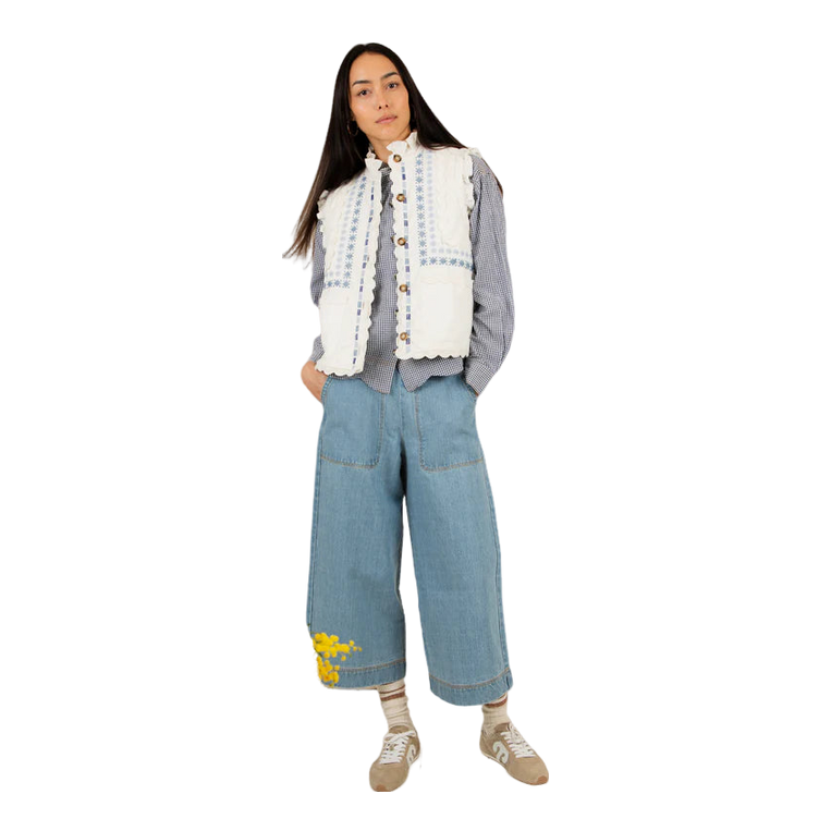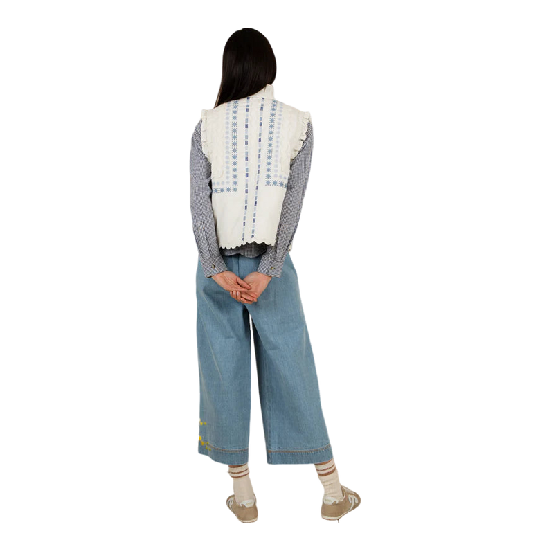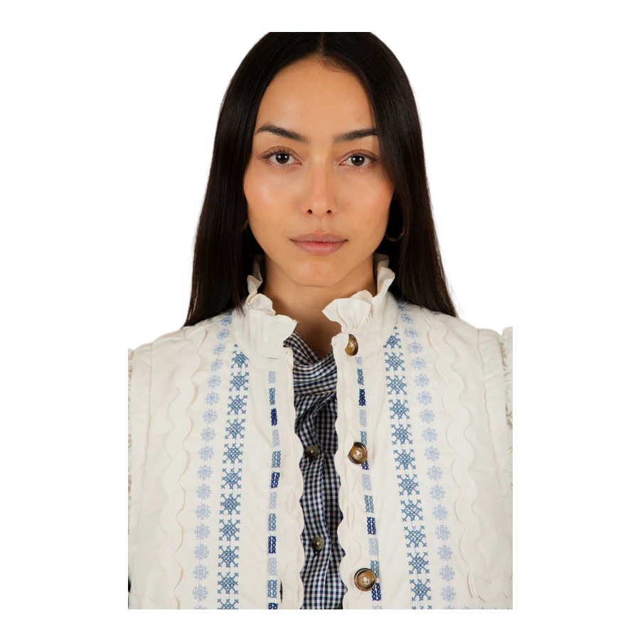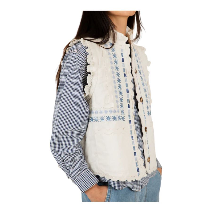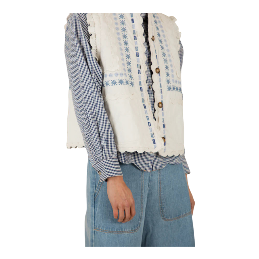 The Bonte Gwen Gilet showcases a charming design with intricate detailing. This versatile outerwear piece is ideal for layering over a shirt or simple top, adding a touch of personality to any outfit. Perfect for casual outings or social events, it provides warmth without compromising style. Embrace comfort and elegance with this unique gilet, effortlessly elevating your wardrobe for any occasion.