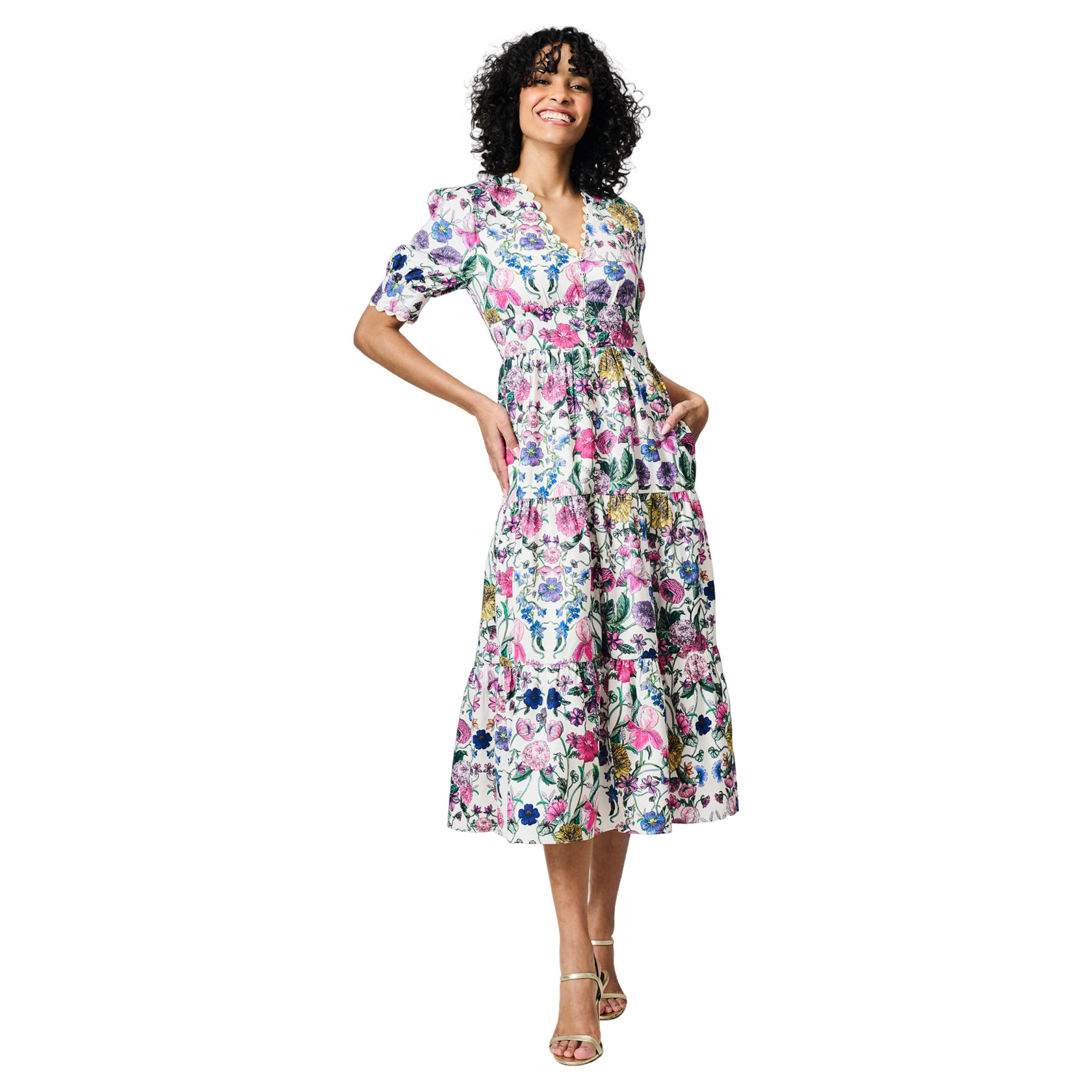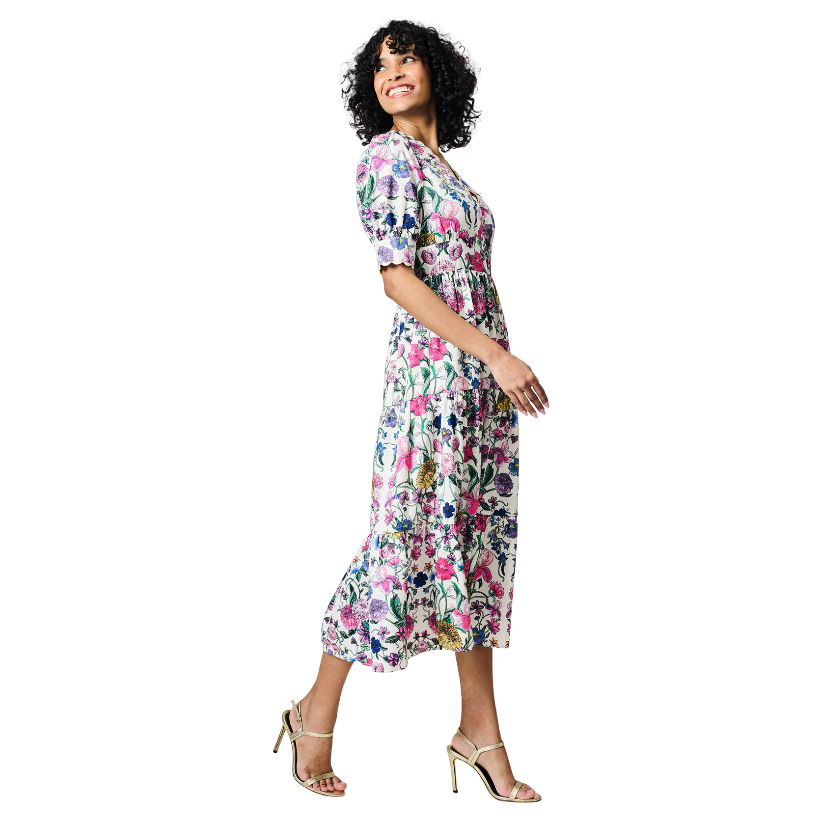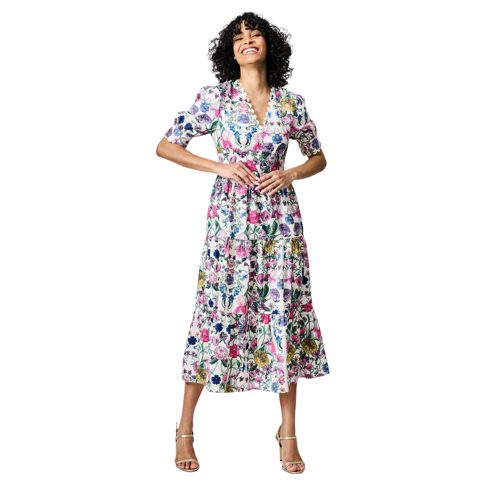 Hope & Ivy Sonnet V-neck Full Skirt Tea Dress With Puff Sleeves
