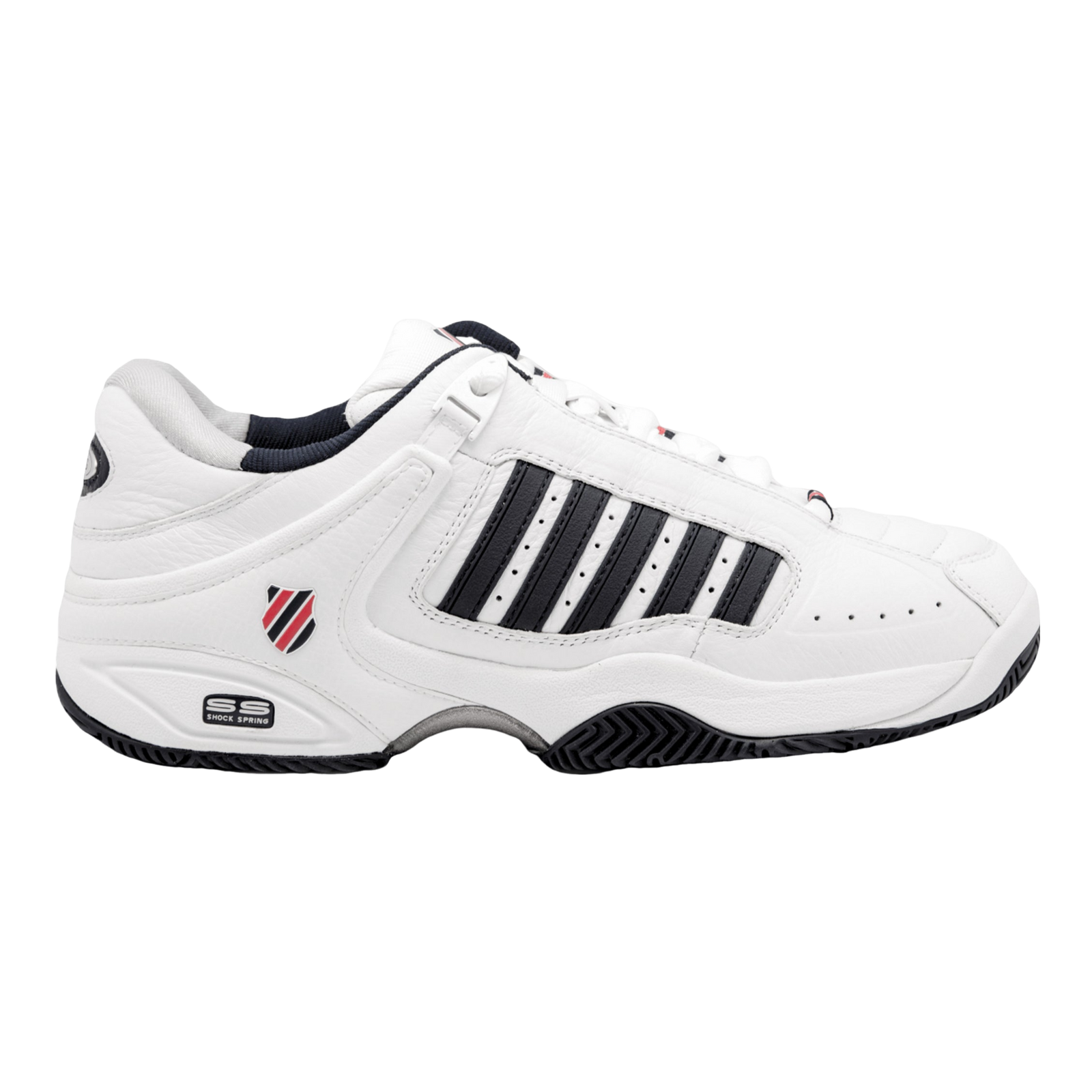 The K-Swiss Tfw Defier RS Tennis Shoes are engineered for tournament players demanding exceptional stability and durability. Featuring an Aösta® 7.0 rubber outsole with Drag Guard™ zones at the toe and heel, they offer reinforced resilience where it matters most. The Cushion Board™ Construction in the midfoot ensures stability during quick directional changes, while Shock Spring® Cushioning technology delivers superior comfort and impact absorption throughout intense play. Ideal for players seeking reliable performance and protection on the court.