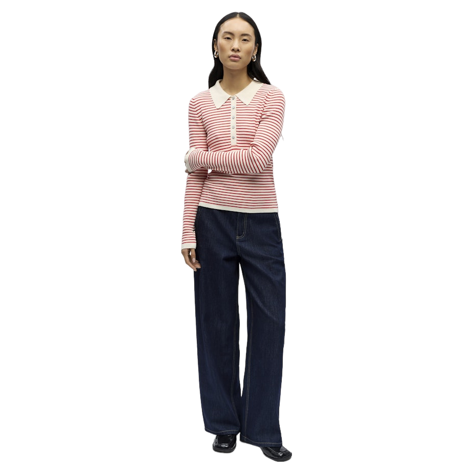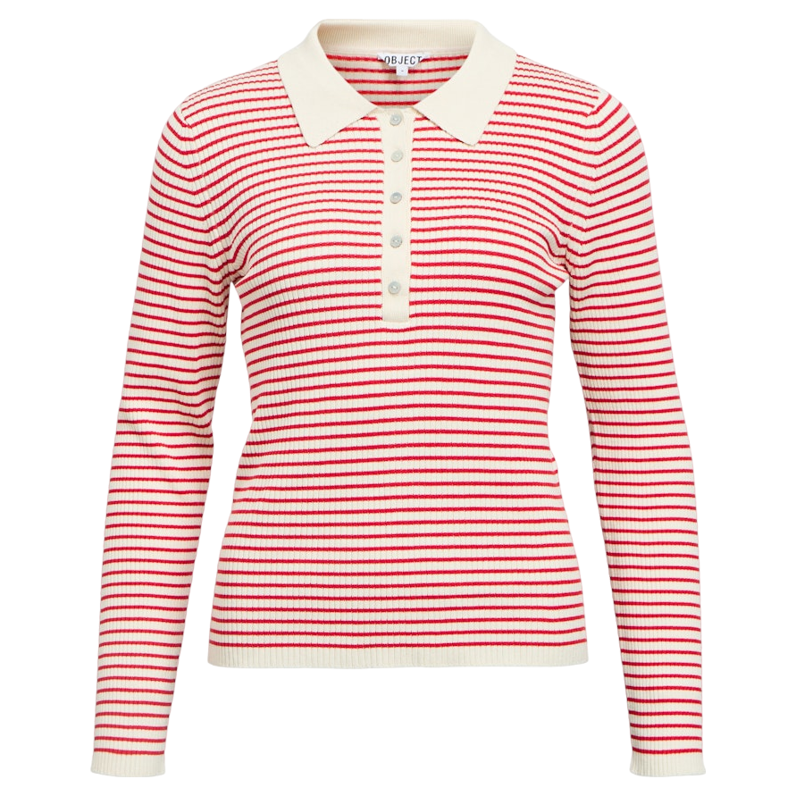 Object Objkelly Long Sleeve Polo Knit Pullover