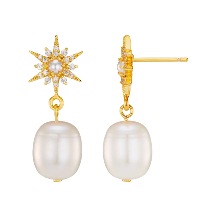 Elevate your accessory collection with the Orelia Jewellery Pave Starburst & Pearl Drop Earrings. These stunning drop earrings feature an eyepin stud design, beautifully adorned with a sparkling starburst motif and lustrous pearls. Crafted from 18k gold plating, they combine elegance and sophistication. These earrings are ideal for enhancing both casual and formal outfits, making them a wonderful choice for evenings out or special occasions.