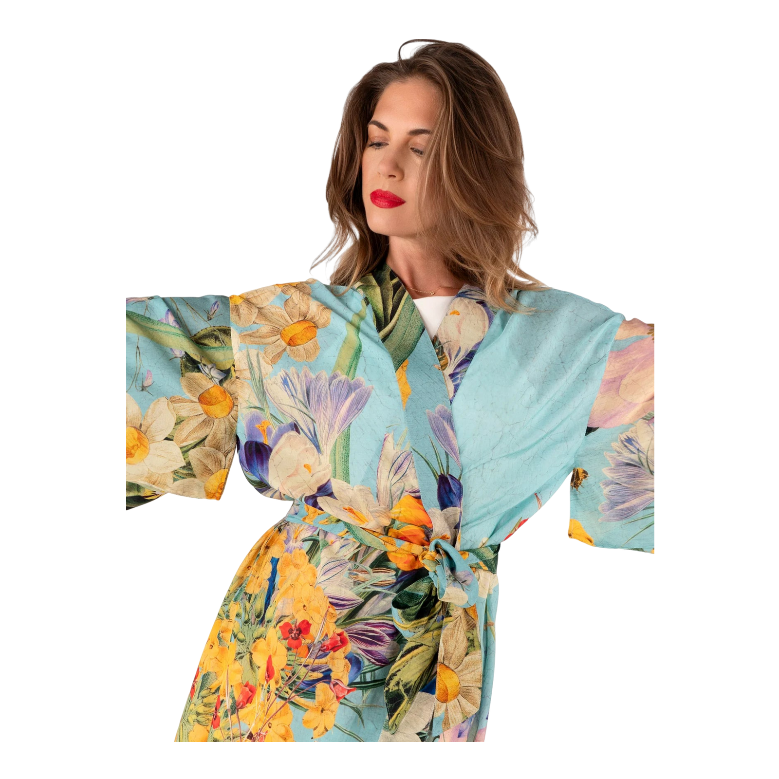 Powder Modal/cupro Long Kimono Gown