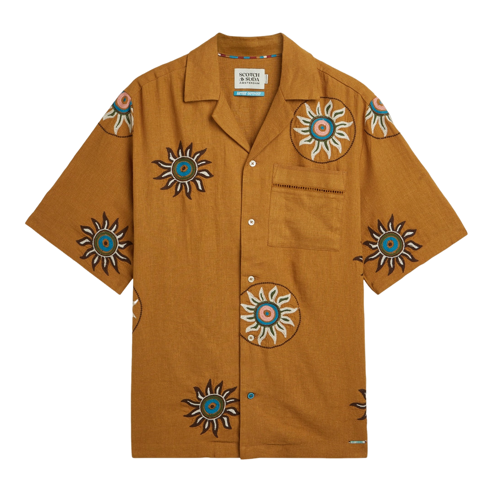 Scotch & Soda Embroidered Linen Short Sleeve Shirt