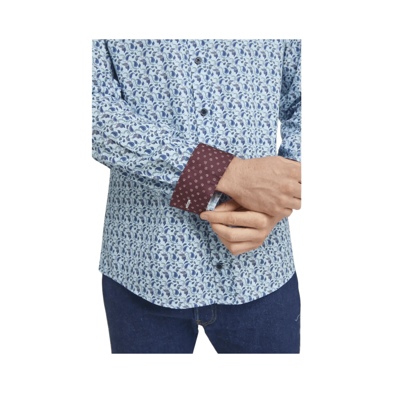 This classy shirt from Double Two is the perfect option for casual Fridays or late-night dinner dates. Made from 100% cotton for a soft to the touch finish, this shirt features an all-over paisley pattern, long sleeves, and a contrast inner cuffs. Pair with jeans, chinos, or formal trousers for a sophisticated outfit.