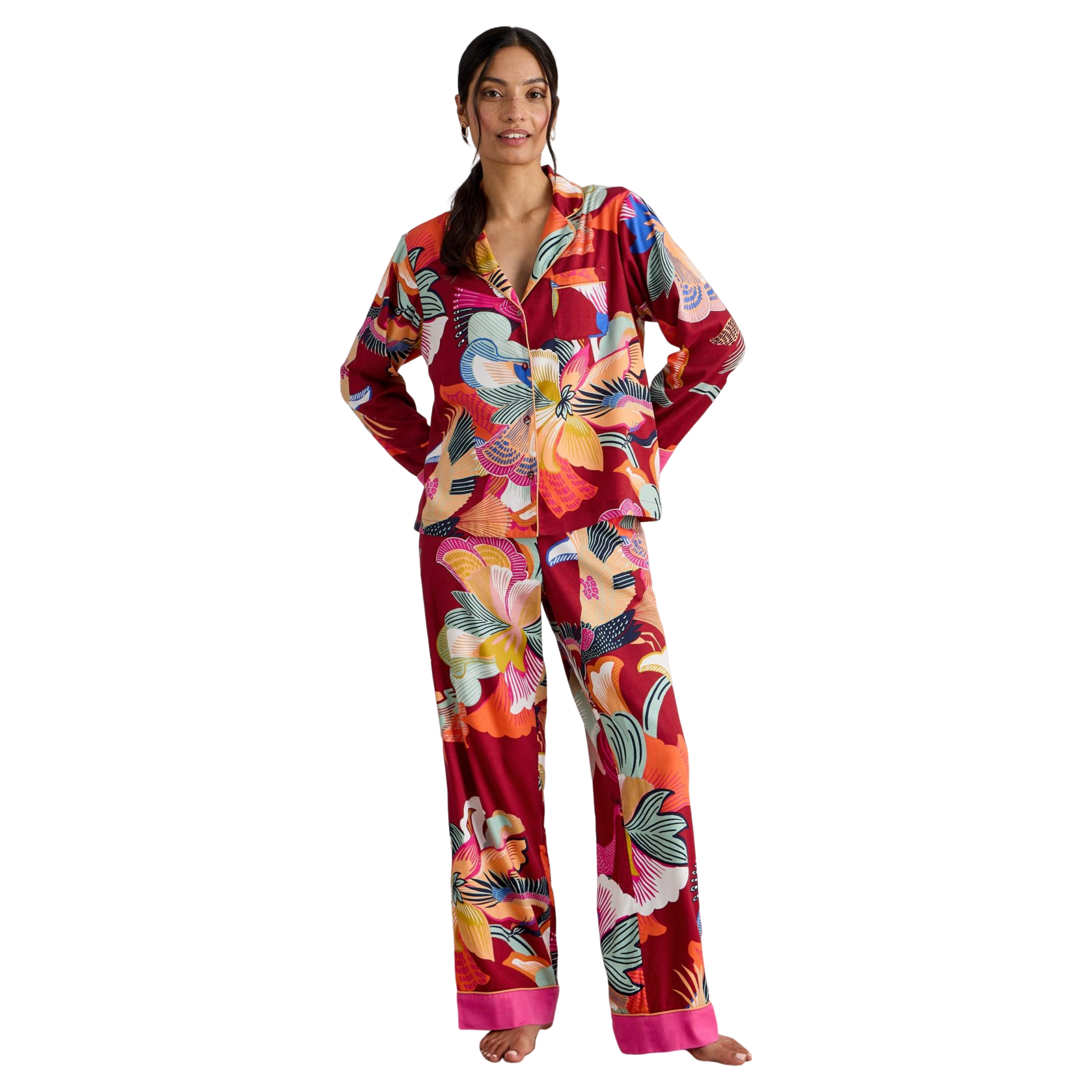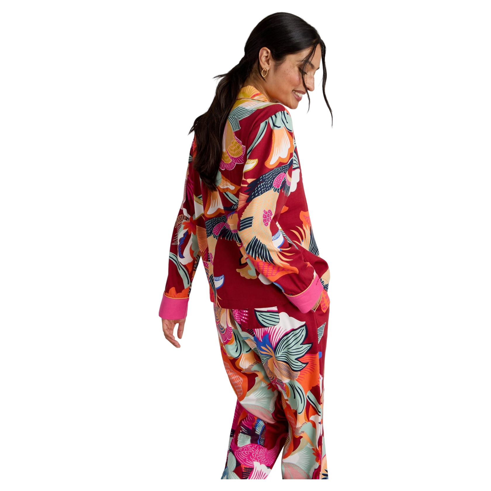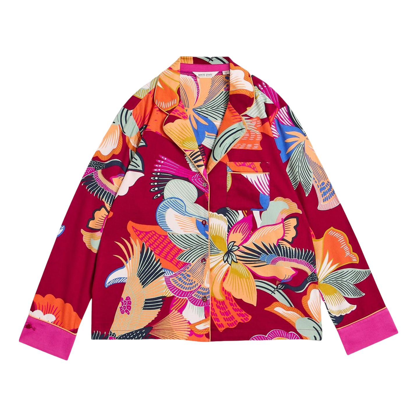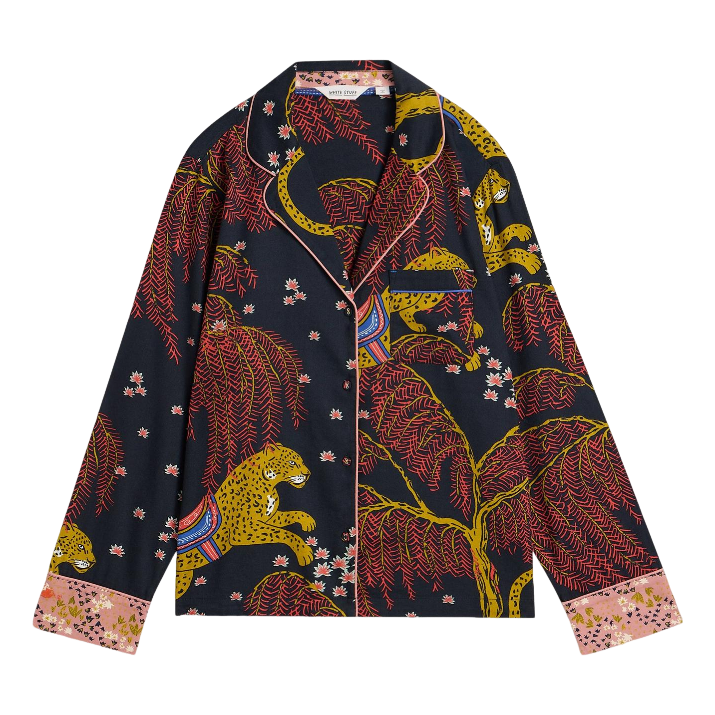 The White Stuff Nina pyjama Shirt features a relaxed fit with long sleeves and a button fastening for easy wear. The button-down collar adds a refined touch, complemented by contrasting prints on the cuffs for added charm. This versatile nightwear is ideal for cosy evenings at home or leisurely mornings, ensuring you stay comfortable and stylish while you unwind. Treat yourself to a delightful night's sleep with this charming piece.
